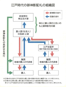 徳川幕府の賦与御免以降、当社では御神影を配札するための組織作りが進められる事になりました。配札にあたっては各地の事情に通じた人物に免許状を交付して委託する方法を採りました。この配札者を願人(がんにん)といいます。